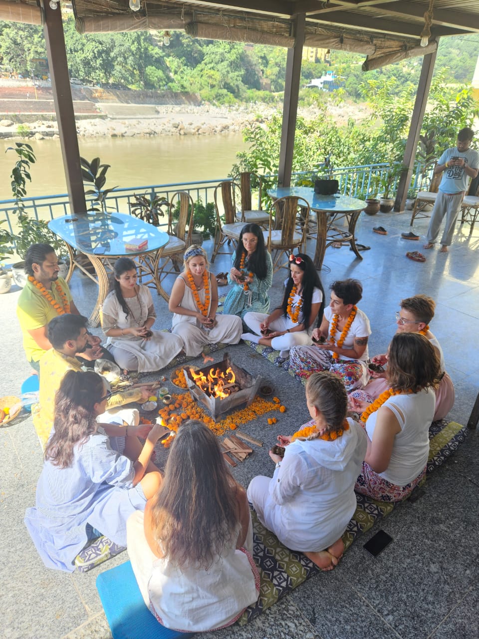 Embrace serenity as you flow through your yoga practice, surrounded by the gentle whispers of nature. Feel the warmth of the morning sun on your skin, breathe in the crisp, pure air, and let the rhythmic sounds of the maa Ganges guide you into deep relaxation. Whether you seek spiritual awakening, mindful rejuvenation, or a quiet escape from the everyday